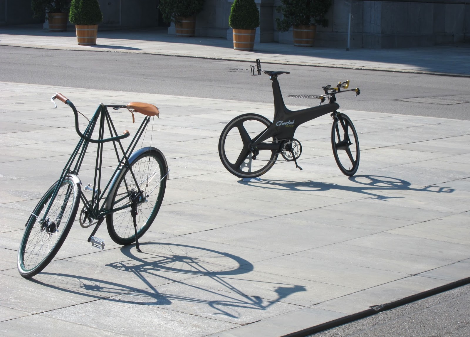 Zwei Fahrräder der Kategorie "Racer": ein Pedersen Modell Racer von Kemper und das Zeitfahrrad Cat Cheetah.